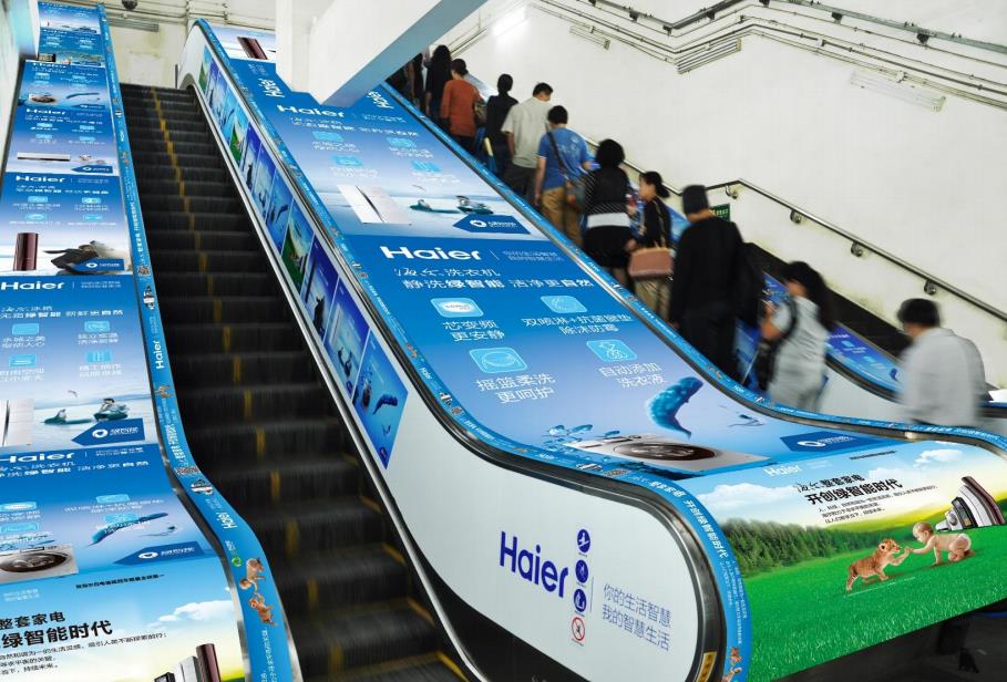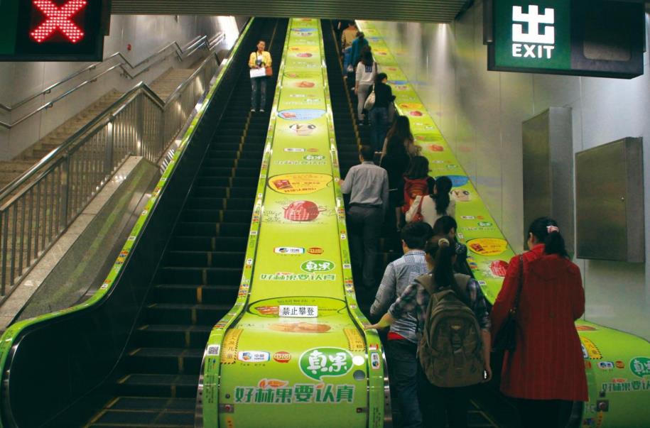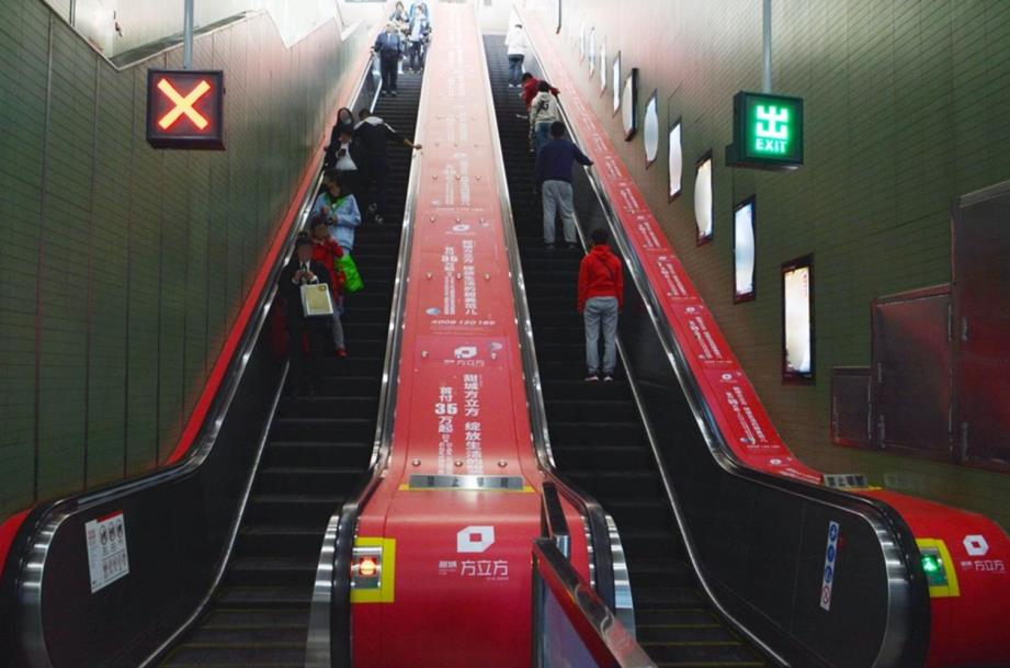 扶梯側(cè)墻海報(bào):位于電梯側(cè)墻,直接面對(duì)出入口上下樓梯的乘客;價(jià)格廉宜,是理想的促銷媒體;整條扶梯使用可以展示一系列產(chǎn)品,或者以一式多樣的廣告畫面創(chuàng)造強(qiáng)烈的視覺效果。
