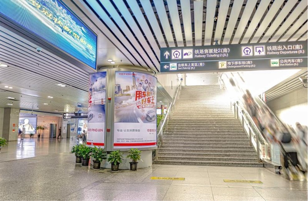 寧波高鐵站燈箱廣告-北廣場通道圓柱燈箱廣告