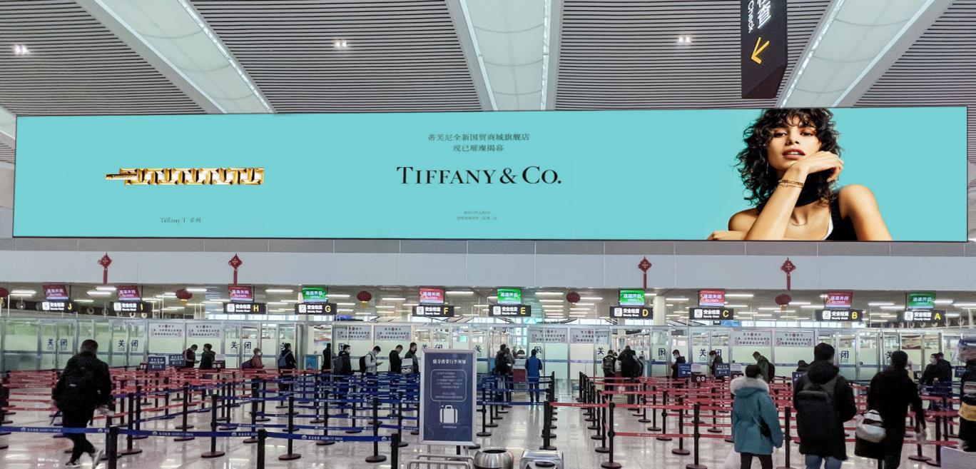 ① T2航站樓國內(nèi)出發(fā)安檢上方。 ②覆蓋100%國內(nèi)出發(fā)旅客。