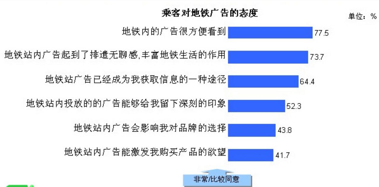 地鐵廣告接收便利性得到了乘客一致認同;同時,地鐵廣告緩解無聊感,是乘客的主要信息途徑,能給乘客留下很深的印象。此外,超過四成的乘客認為地鐵廣告會激發購買欲望、影響品牌選擇。