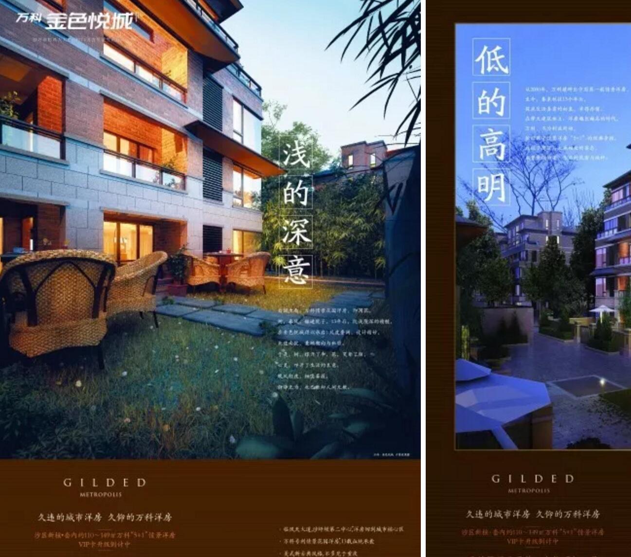 同樣是說洋房的賣點,但萬科金色悅城就說得非常巧妙,用一組反義詞說出了賣點和意義。”