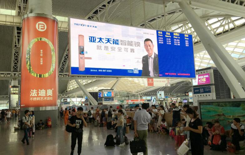 繼廣州白云國際機場第一波廣告強勢刷屏后,7月6日起亞太天能在廣州南站投放第二波品牌廣告,全方位霸屏LED旅客信息大屏,進一步強化亞太天能智能鎖品牌的領軍地位!