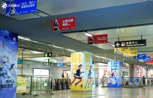 為了更好地推廣這款佳作,《卡拉彼丘》在北京、上海、廣州、深圳和成都等五個(gè)大城市的地標(biāo)地鐵站內(nèi)進(jìn)行了全方位的巨幅廣告投放。這些廣告以游戲的賣點(diǎn)為創(chuàng)意靈感,展示了游戲中備受歡迎的角色和個(gè)性化武器。而在彈幕墻面和柱體上設(shè)計(jì)的角色更是呈現(xiàn)出獨(dú)特的弦化模式。這些精心策劃的廣告吸引了大量當(dāng)?shù)厥忻竦年P(guān)注,甚至有網(wǎng)民發(fā)文稱《卡拉彼丘》“破壁出圈”了。