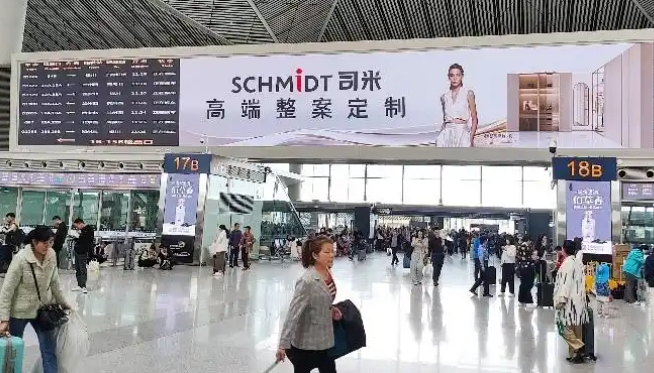 今年51假期,高鐵旅客流量再創歷史新高,SCHMIDT司米品牌傳播借勢而上。基于高鐵廣告傳播高覆蓋面與權威性等特征,在交通樞紐高端媒體上展開戰略式滲透布局,進一步加深全國消費者對SCHMIDT司米“高端整案定制”品牌定位的認知與了解。